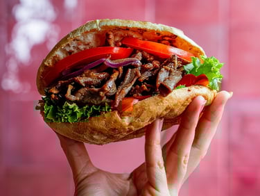 Bei BABAQ steht dein Hunger im Mittelpunkt. Frisch gegrilltes Rindfleisch vom Spieß, warmes Sauerteigbrot, knackige Zutaten und fein abgestimmte Saucen ergeben einen Döner, der satt macht und nicht austauschbar schmeckt. Alles wird direkt vor deinen Augen zubereitet, ohne Abkürzungen und ohne Kompromisse.