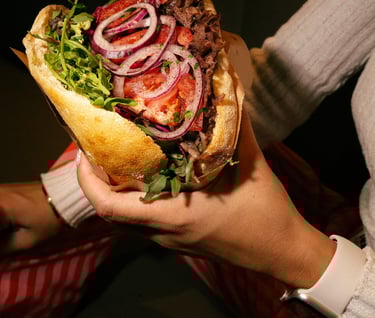 Entdecke BABAQ, Döner neu gedacht und kompromisslos umgesetzt. Bei uns dreht sich hochwertiges Rindfleisch am Spieß, frisch geschnitten, saftig gegrillt und kombiniert mit ausgewählten Zutaten wie Rucola, feinen Saucen und einem Spritzer Zitrone. Serviert wird alles im täglich frisch gebackenen Sauerteigbrot aus der regionalen Brotmanufaktur. Klar im Geschmack, ehrlich in der Qualität.